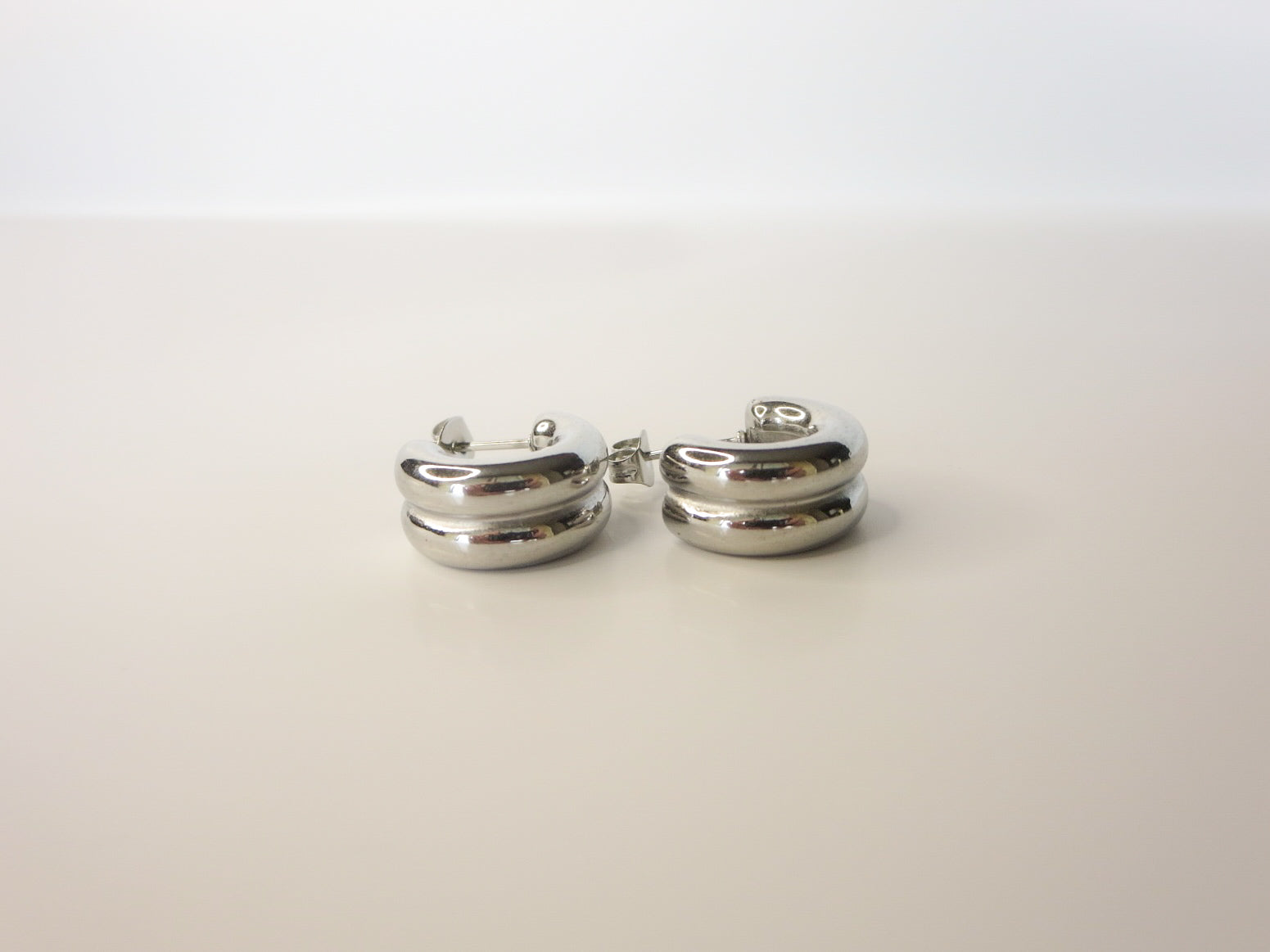 Aretes de aro elaborados en acero inoxidable plateado, diseñados con un estilo grueso y doble textura que aporta un look moderno y elegante. Su acabado brillante realza la forma redondeada y voluminosa, creando un accesorio versátil que combina perfectamente con outfits casuales o más formales. Son ligeros, resistentes y mantienen su color dorado por mucho tiempo gracias a su material de alta durabilidad.